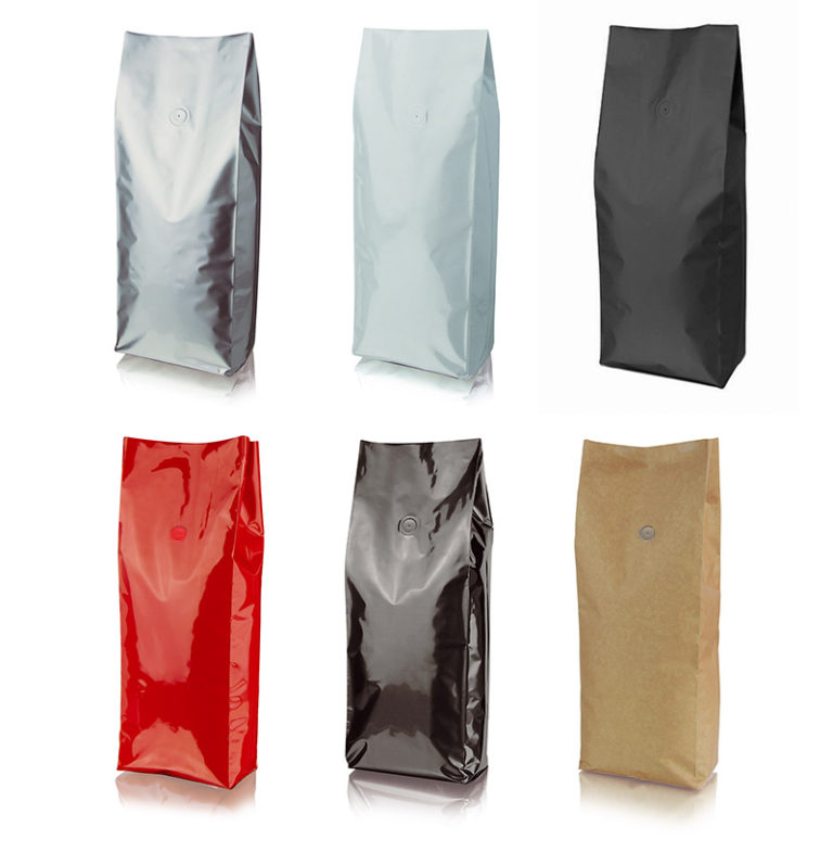 Sacchetti anonimi con zip preformati realizzati con valvola e caratterizzati da elevate proprietà barriera ai gas, vapore acqueo e luce.